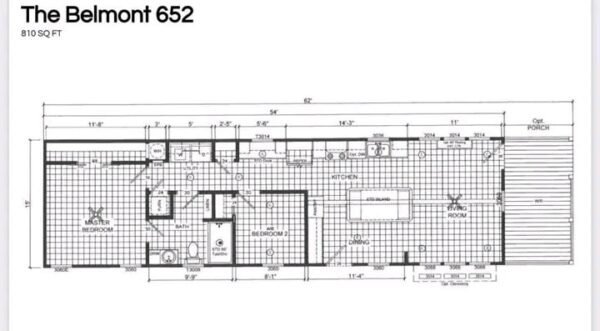“Belmont” 2 bed/1 bath 810 sa foot single section